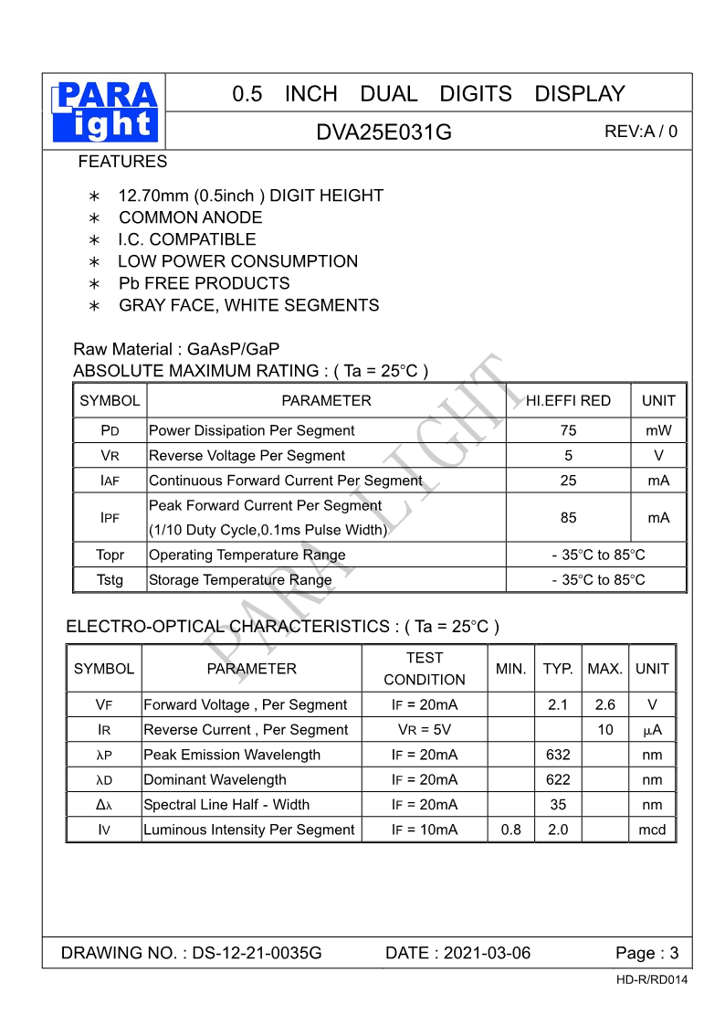 LED发光器件 光鼎LED发光元件 数位显示双8 A502E