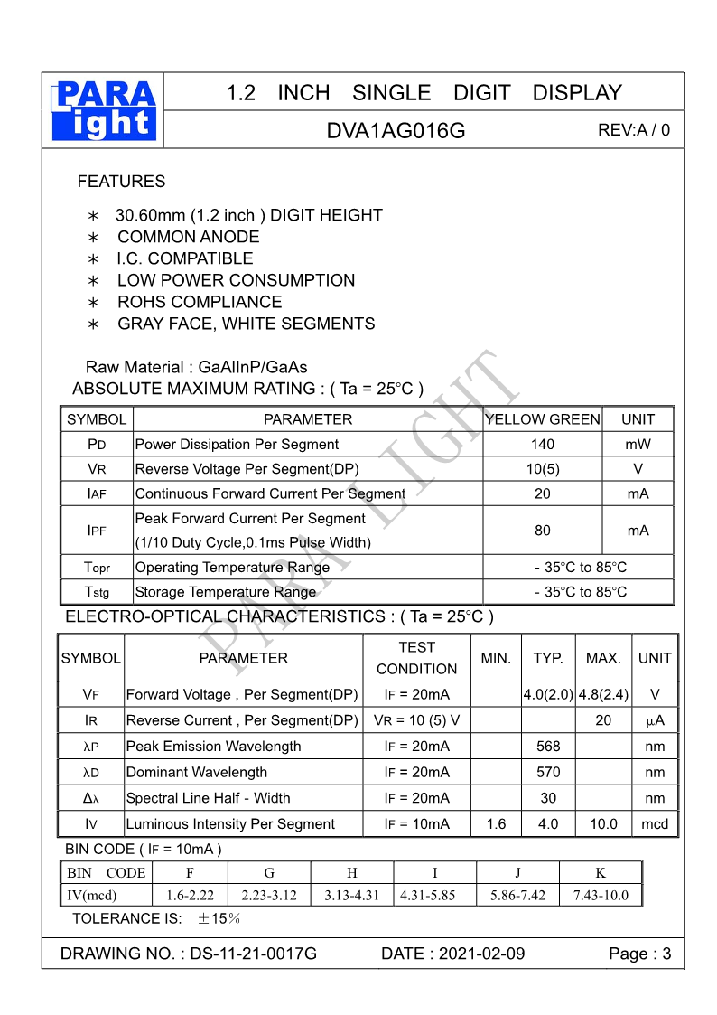 LED发光器件 光鼎LED发光元件 数位显示单8 A1201G
