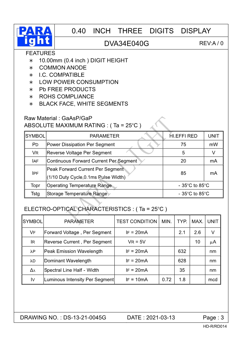 LED发光器件 光鼎LED发光元件 数位显示三8 A403E-12