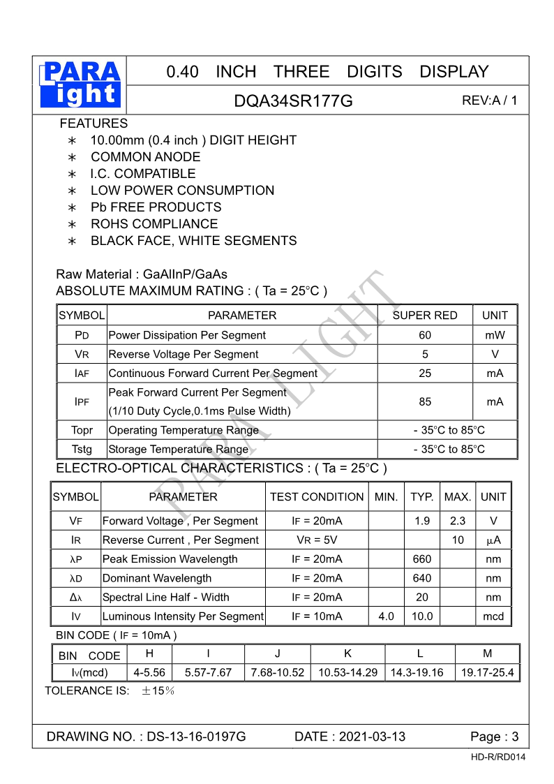 LED发光器件 光鼎LED发光元件 数位显示三8 A403SR-12