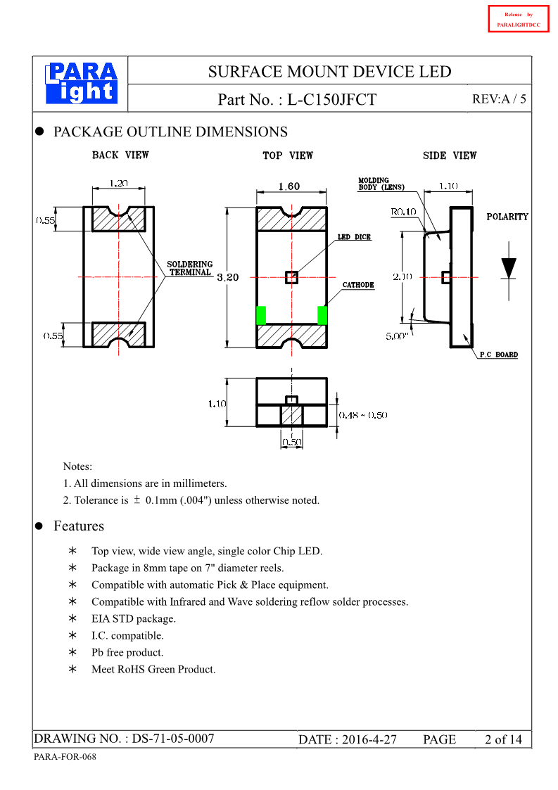 LED发光器件 光鼎LED发光元件 贴片式 Top View单色 L-C150JFCT