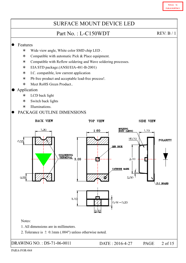 LED发光器件 光鼎LED发光元件 贴片式 Top View单色 L-C150WDT
