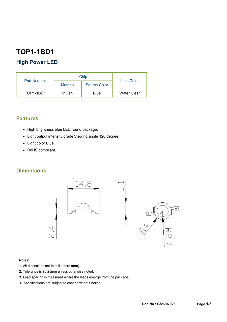 李洲高功率发光二极管High Power LED TOP1-1BD1