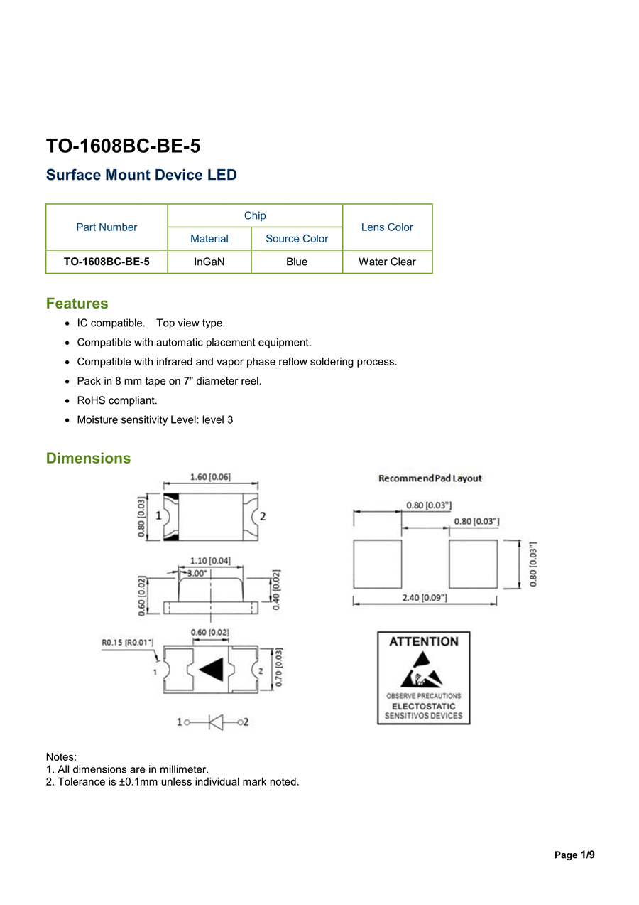 李洲表面黏着型发光二极管SMD LEDTO-1608BC-BE-5