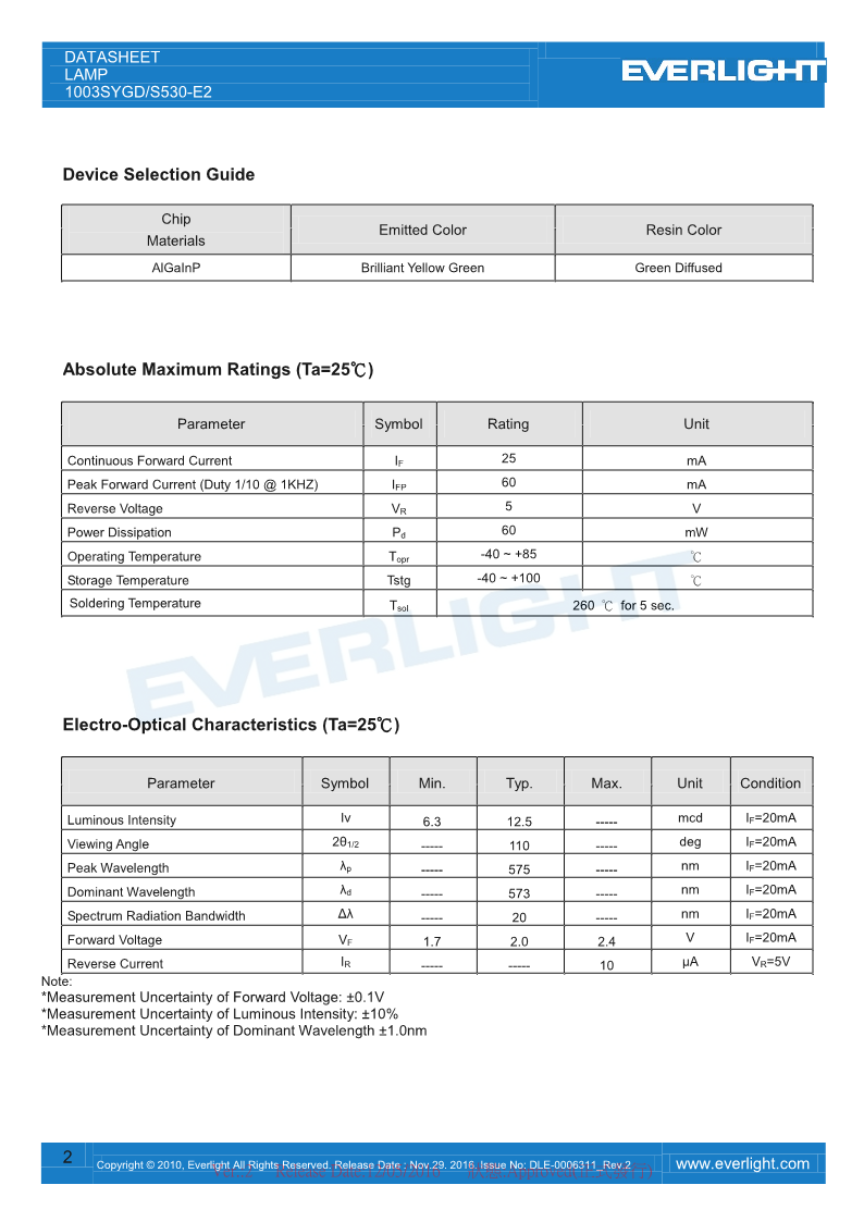 LED发光器件 亿光LED发光元件 可见光LED 插件式LED 1003SYGD/S530-E2