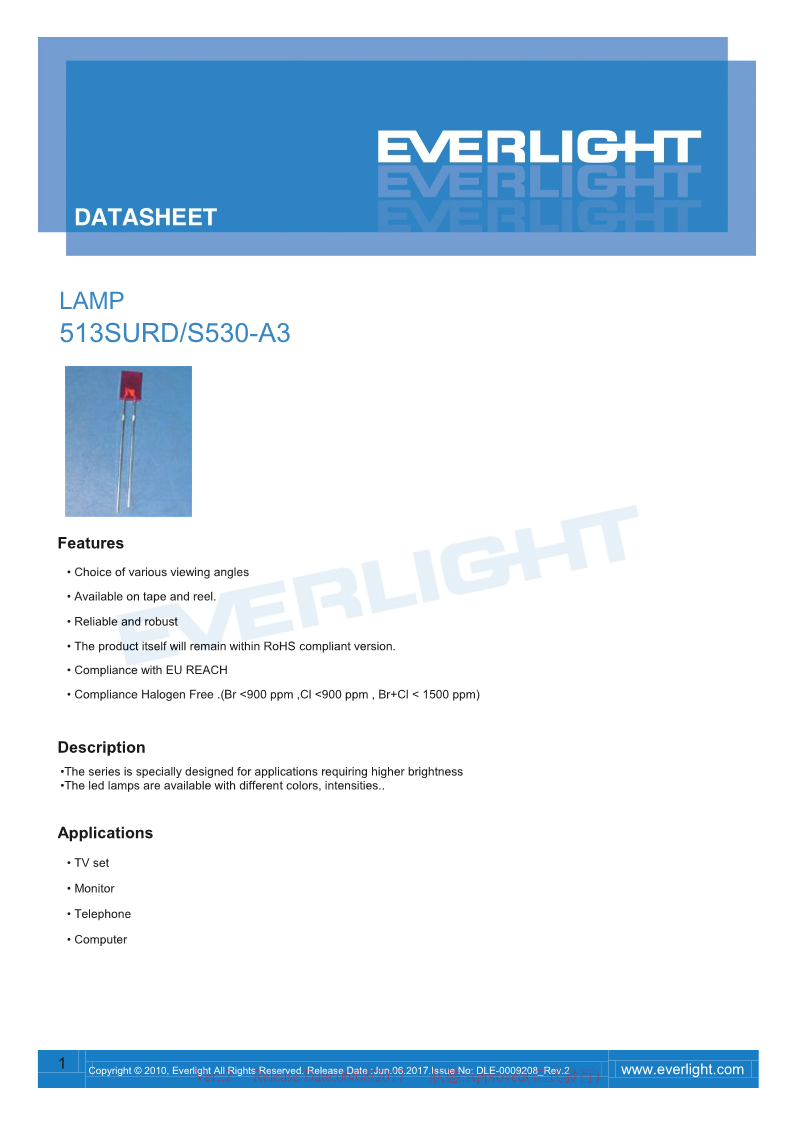 LED发光器件 亿光LED发光元件 可见光LED 插件式LED 513SURD/S530-A3