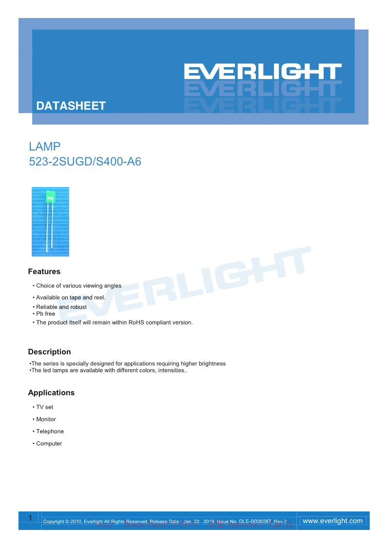 LED发光器件 亿光LED发光元件 可见光LED 插件式LED 523-2SUGD/S400-A6