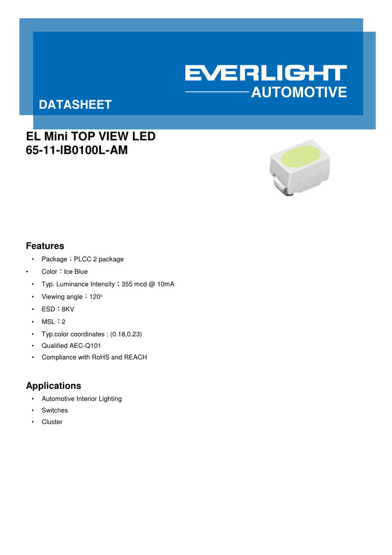 LED发光器件 亿光LED发光元件 可见光LED 车用元件LED 65-11-IB0100L-AM