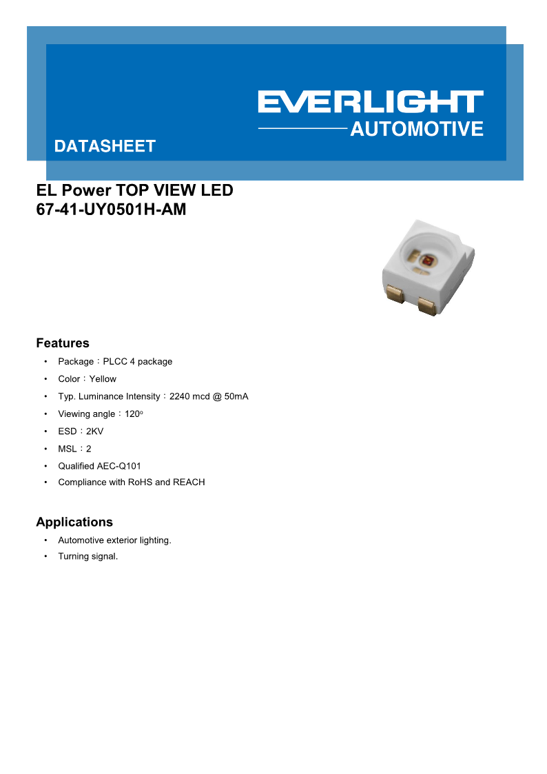 LED发光器件 亿光LED发光元件 可见光LED 车用元件LED 67-41-UY0501H-AM