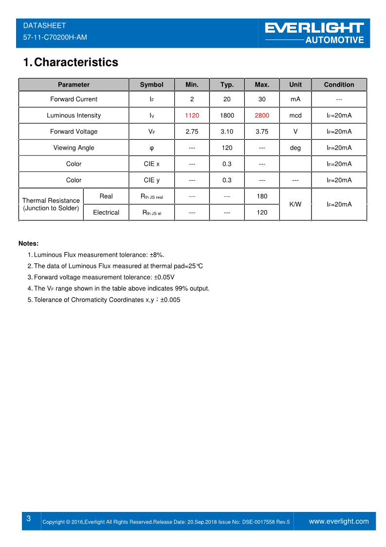LED发光器件 亿光LED发光元件 可见光LED 车用元件LED 57-11-C70200H-AM