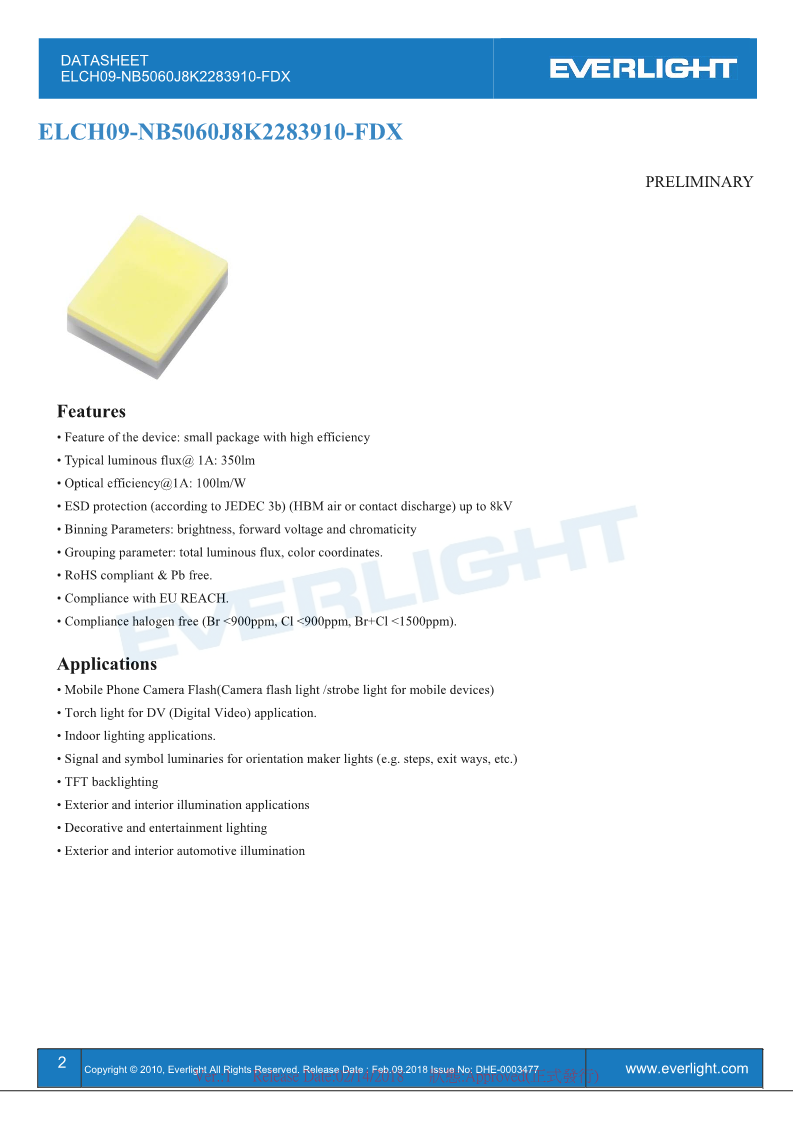LED发光器件 亿光LED发光元件 闪光灯LED ELCH09-NB5060J8K2283910-FDX