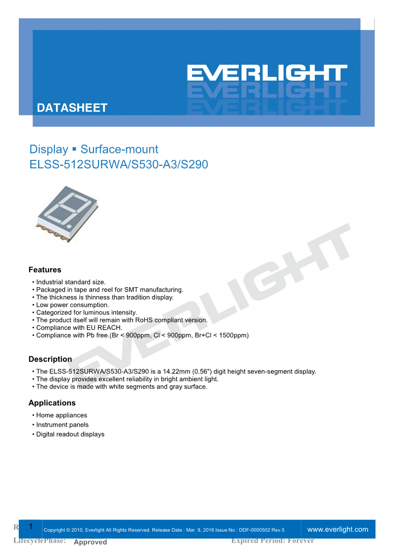 LED发光器件 亿光LED发光元件 数位显示LED SS512SURWA/S530-A3/S290