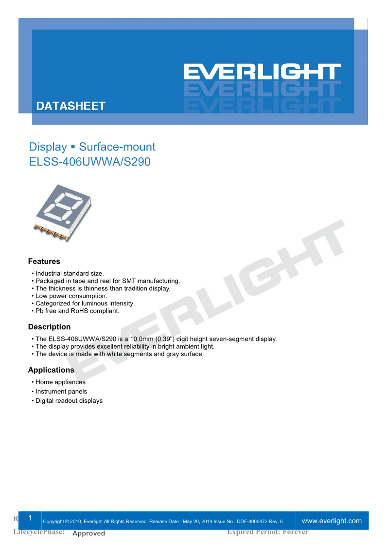 LED发光器件 亿光LED发光元件 数位显示LED SS406UWWA/S290
