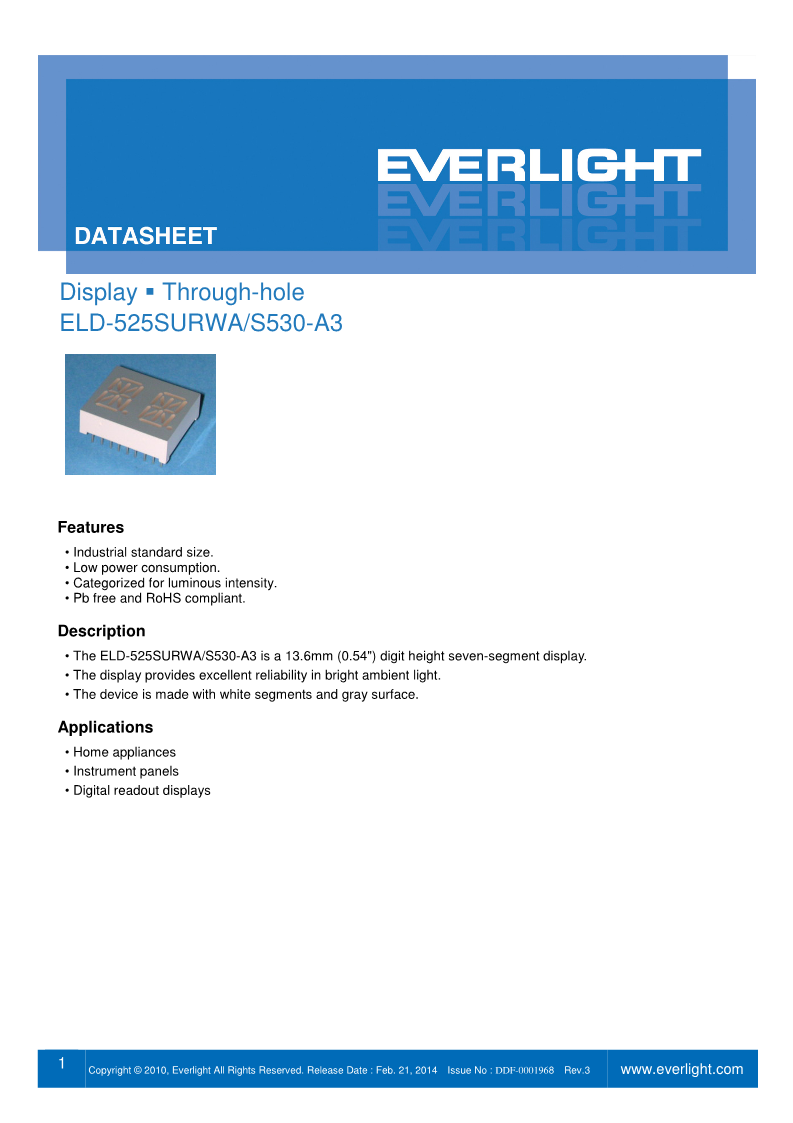 LED发光器件 亿光LED发光元件 数位显示LED D525SURWA/S530-A3