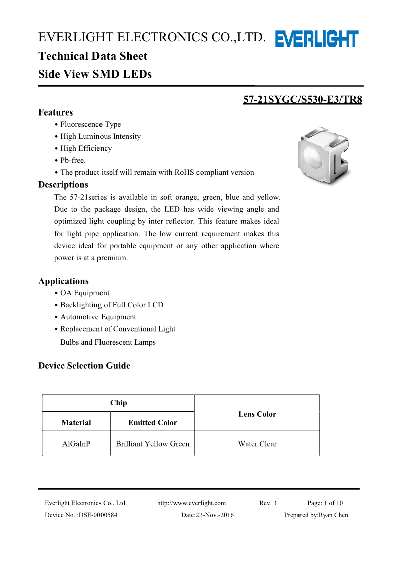LED发光器件 亿光LED发光元件 可见光LED 贴片式LED 57-21SYGC/S530-E3/TR8