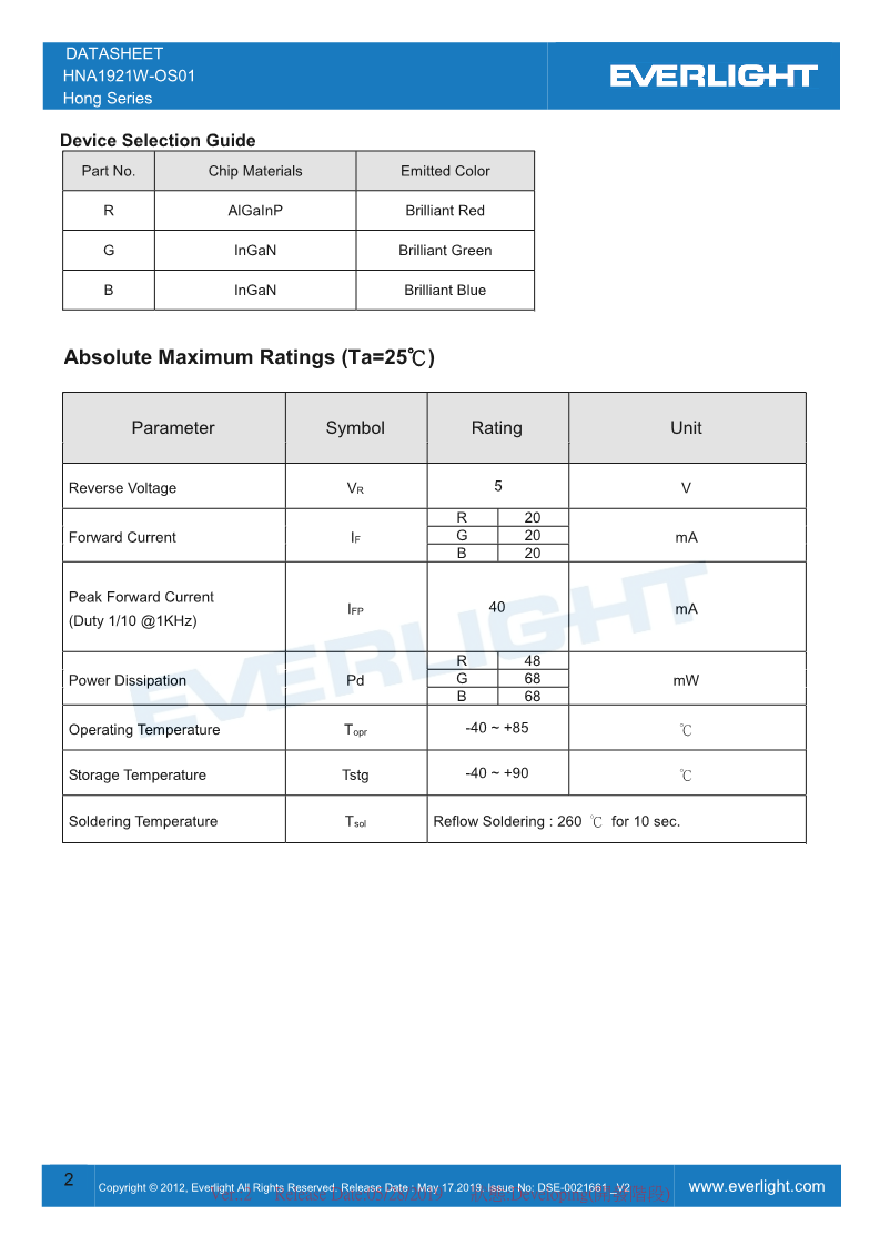 LED发光器件 亿光LED发光元件 可见光LED 贴片式LED HNA1921W-OS01