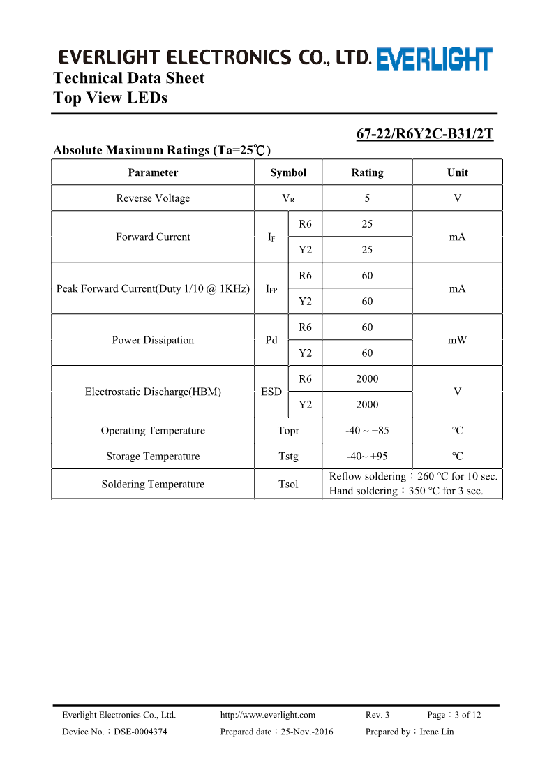 LED发光器件 亿光LED发光元件 可见光LED 贴片式LED 67-22/R6Y2C-B31/2T