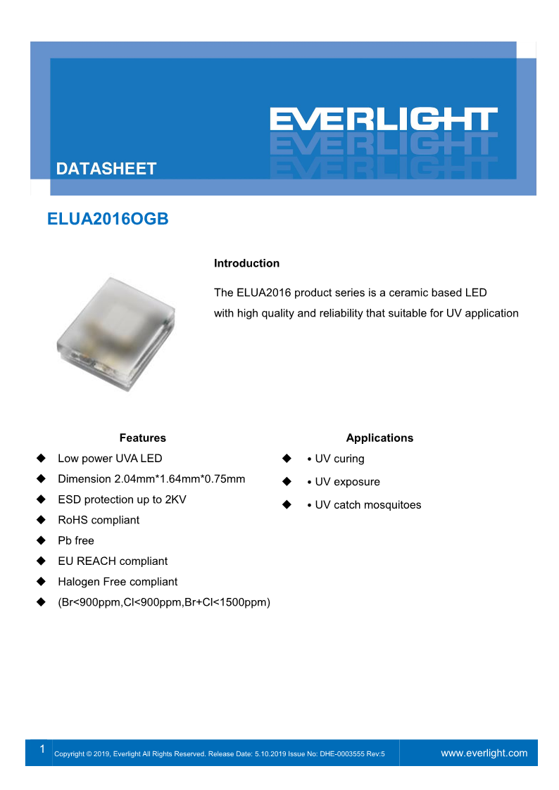 LED发光器件 亿光LED发光元件 紫外线元件LED ELUA2016OGB(1.8W)