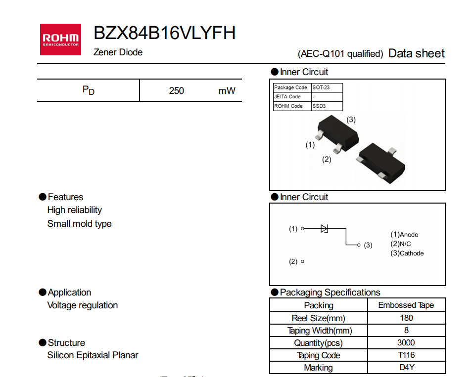 罗姆 半导体/碳化硅 BZX84B16VLYFH