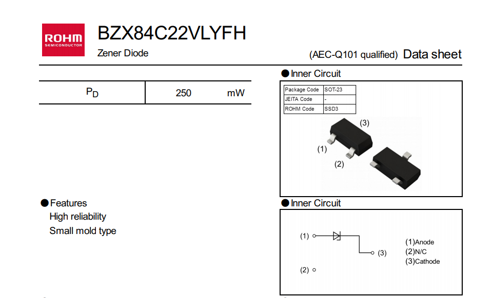 罗姆 半导体/碳化硅 BZX84C22VLYFH