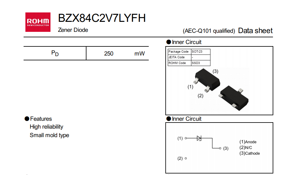 罗姆 半导体/碳化硅 BZX84C2V7LYFH