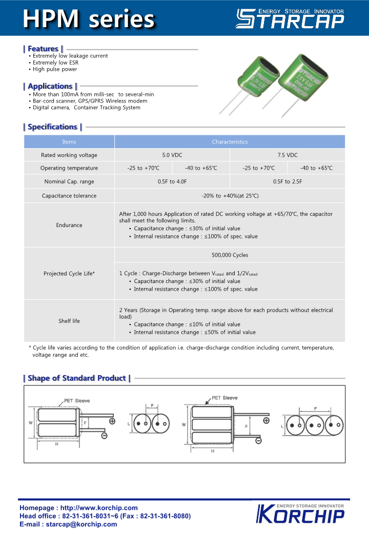 韩国高吉普Korchip扣式超级法拉电容 HPML5R0405