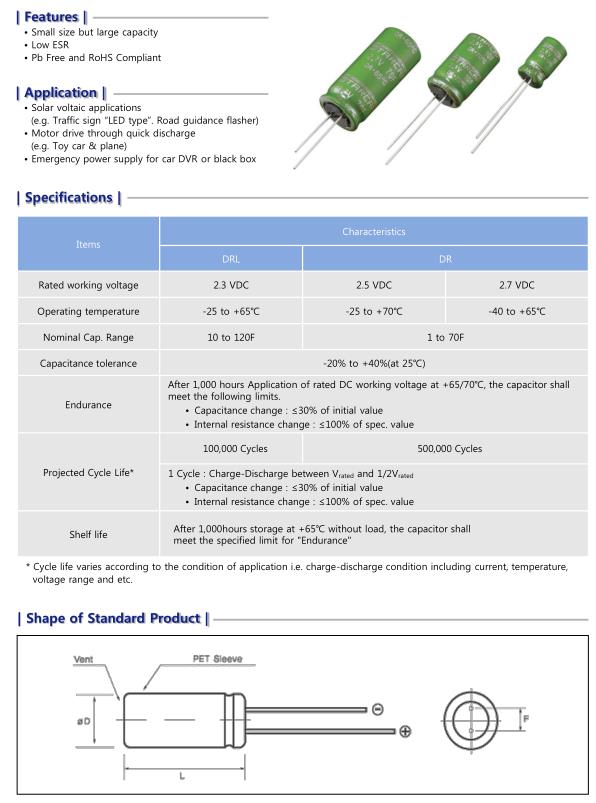 应用领域:太阳能光伏应用 (例如,“LED型”交通标志。道路引导闪光灯) •快速放电电机驱动 (例如玩具汽车和飞机) •车载DVR或黑匣子的应急电源