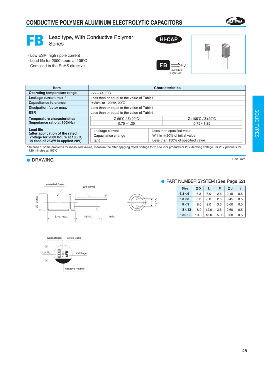 ▷Hi CAP是一种电解电容器,使用高导电聚合物作为电解质。