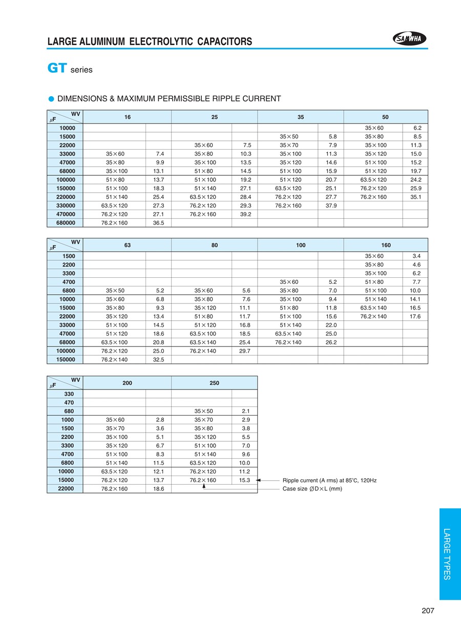 三和电容samwha大型铝电解电容螺栓端子型GT系列