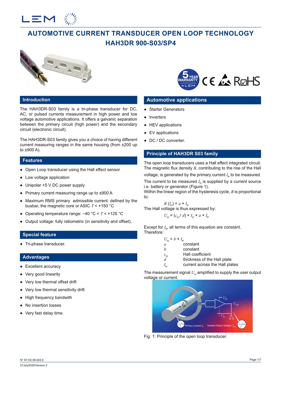 莱姆电流传感器HAH3DR 900-S00/SP4