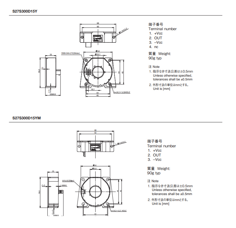 S27S300D15Y适用于中容量UPS和通用逆变器的最佳电流传感器