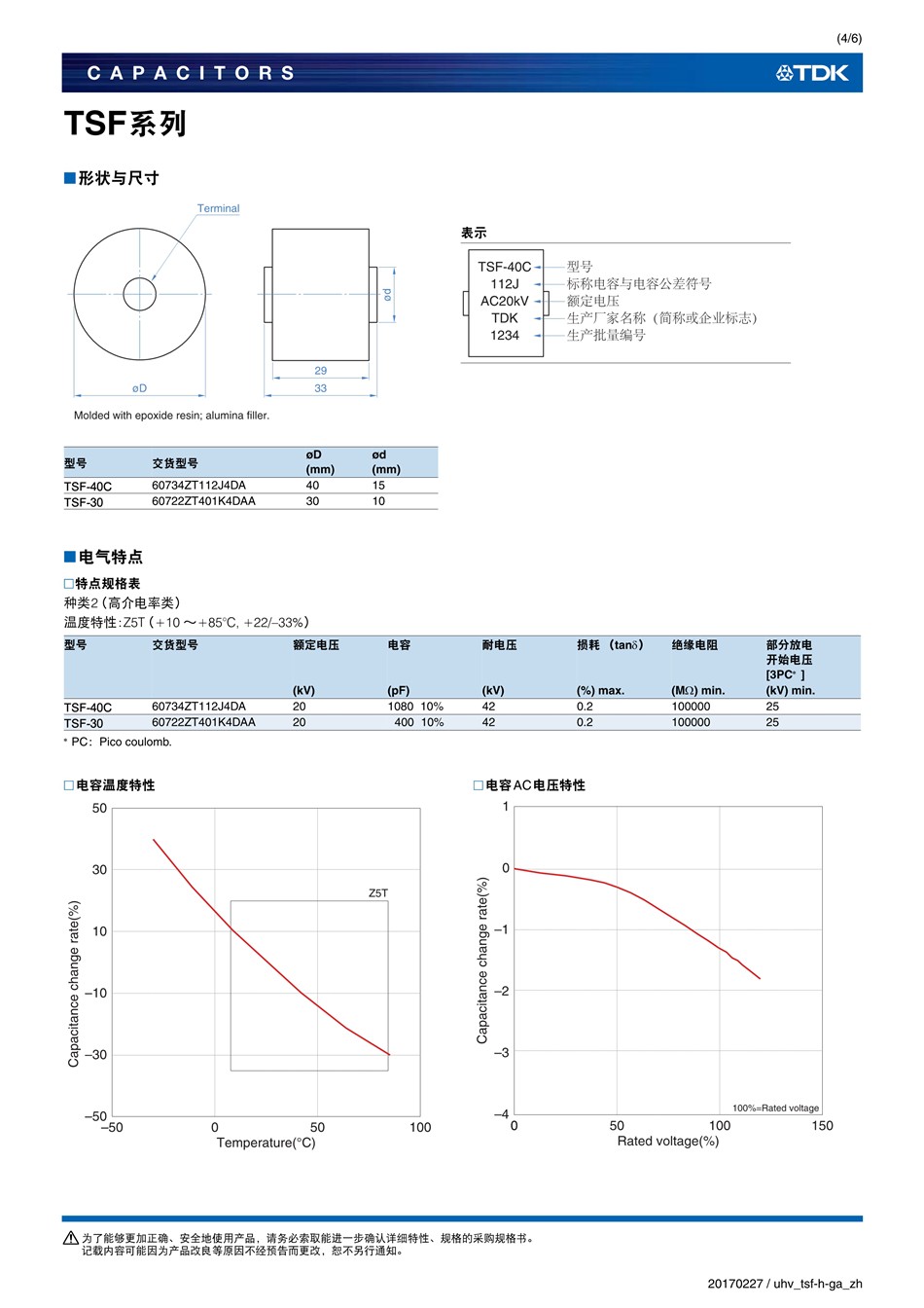 TDK超高电压陶瓷电容器TSF/H/GA系列GA-14 (60739ZT172K4AA)