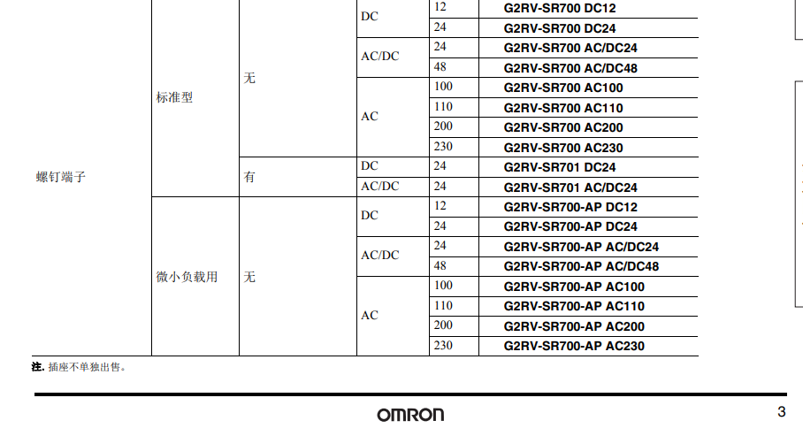 欧姆龙OMRON一般继电器 控制柜用 G2RV-SR700-AP AC200