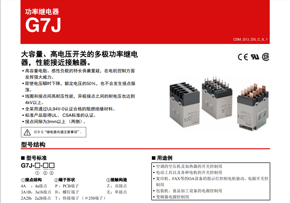 应用领域:大容量、高电压开关的多极功率继电器,性能接近接触器。