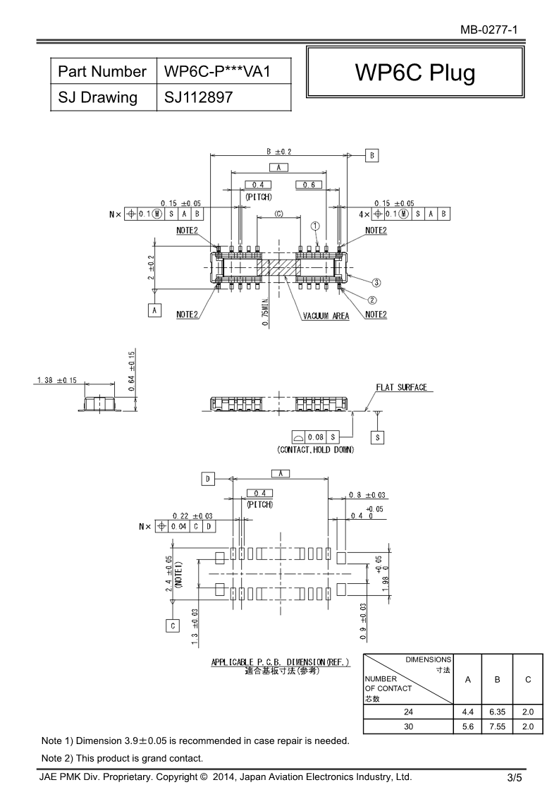 精密连接器 日本JAE连接器 板对板用连接器 平行连接 WP6C Series (0.4 mm Pitch, Stacking Type Connector)