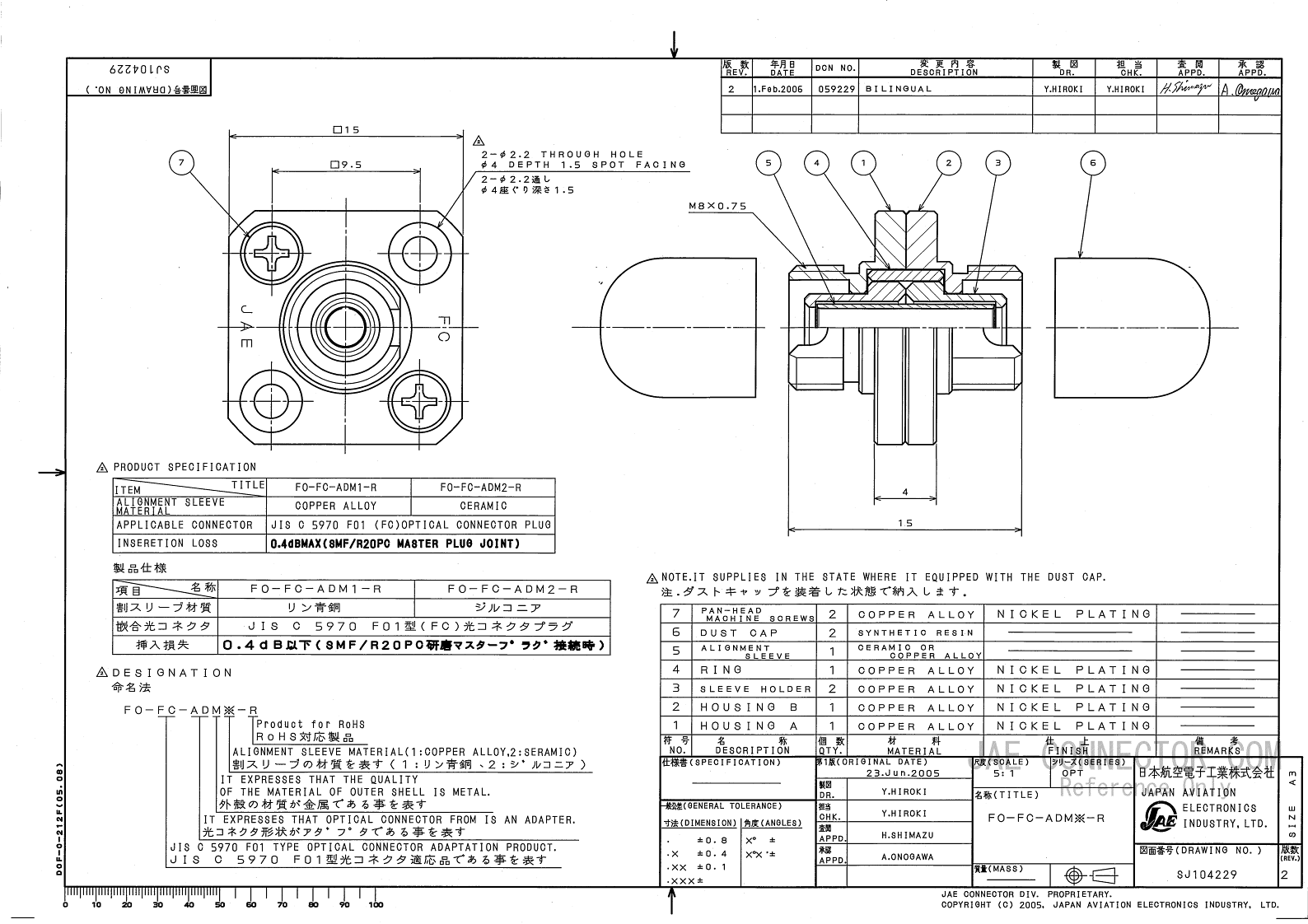 精密连接器 日本JAE连接器 光纤连接器 FO-FC Series Optical Connector