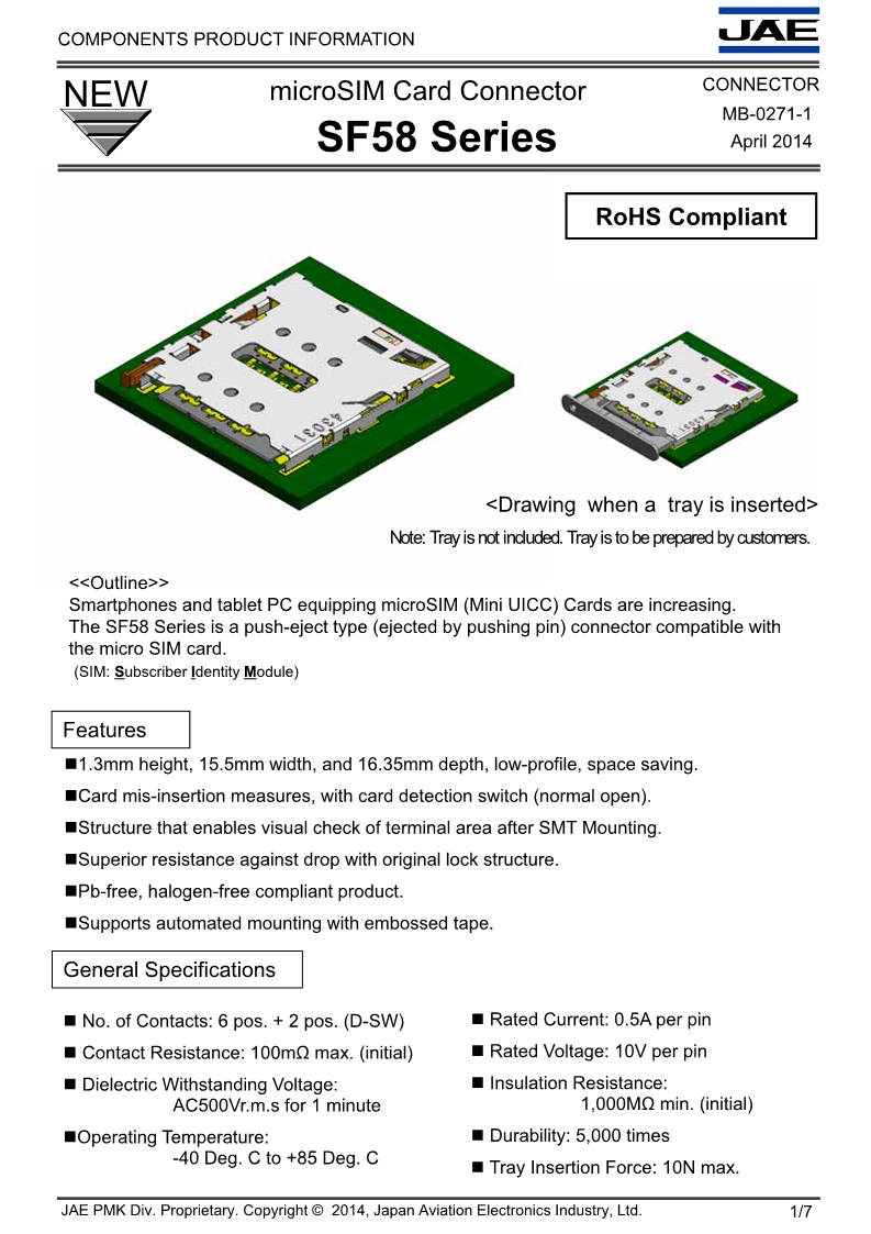 精密连接器 日本JAE连接器 记忆卡座连接器 SIM卡座 SF58 Series (microSIM Card Connector)