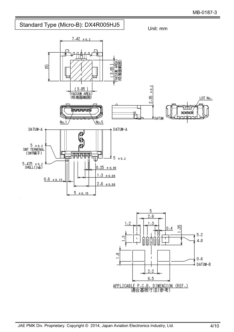 精密连接器 日本JAE连接器 外部接口连接器 USB DX4 Series (USB 2.0 Compatible Micro Connector)