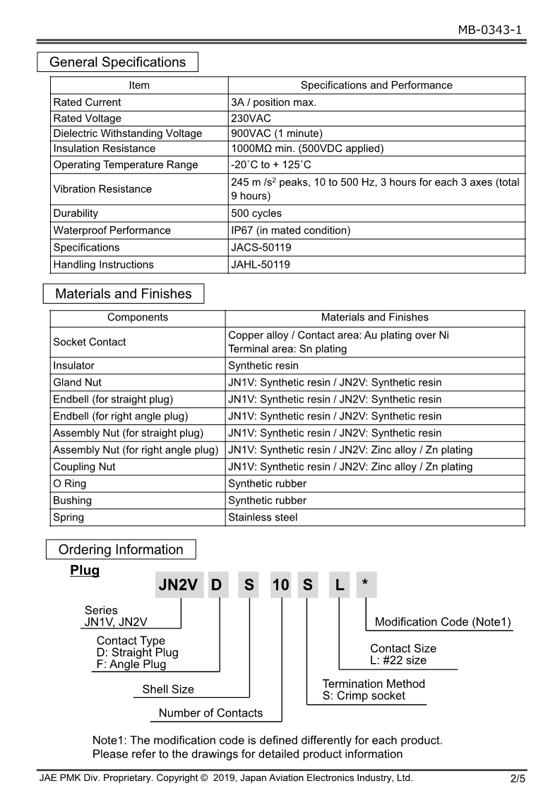 型号:JN1V/JN2V Series (Waterproof Circular Connector)