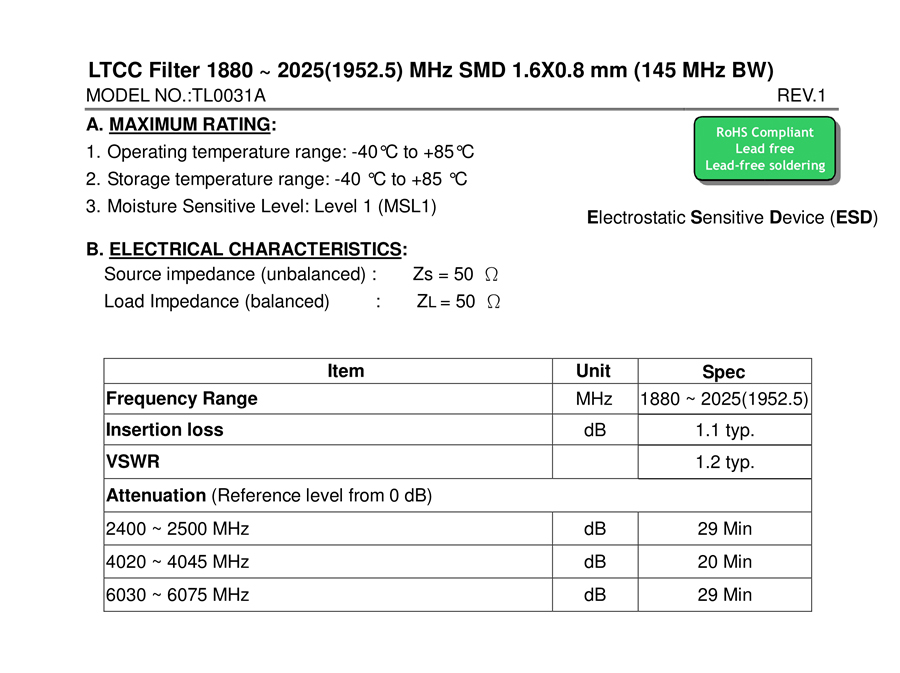 型号:TL0031A