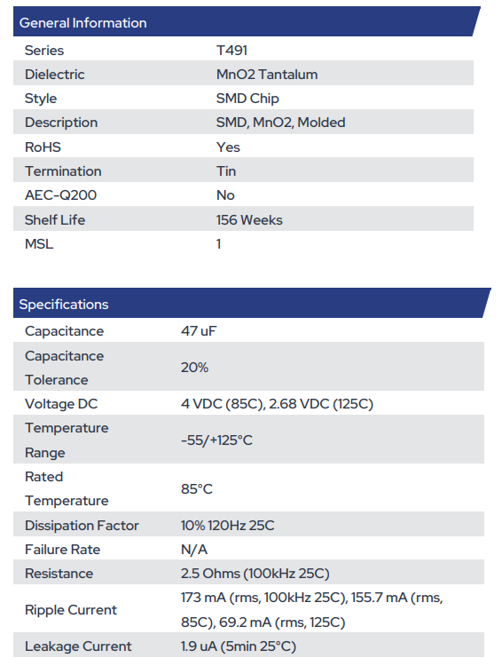 应用领域:KEMET广泛的MnO 2产品组合为电信,工业,汽车,军事和钻探应用领域中的设计人员提供了支持,这些应用需要空间限制,电压要求,使用寿命,最高工作温度要求。