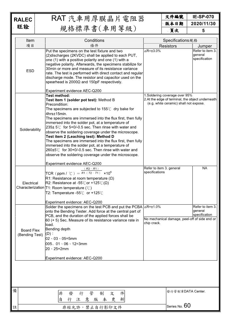 应用领域:车用金属合金电阻,电流检测的最佳选择 车用等级芯片电阻,适用于汽车电子,工业等产品应用 符合AEC-Q200规范 适用于无铅产品应用