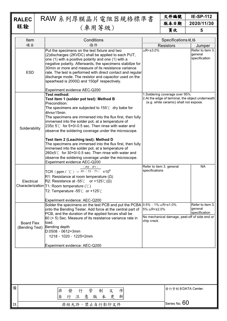 应用领域:车用宽电极厚膜芯片电阻,适用于汽车电子与工业产品应用符合AEC-Q200规范适用于无铅产品应用