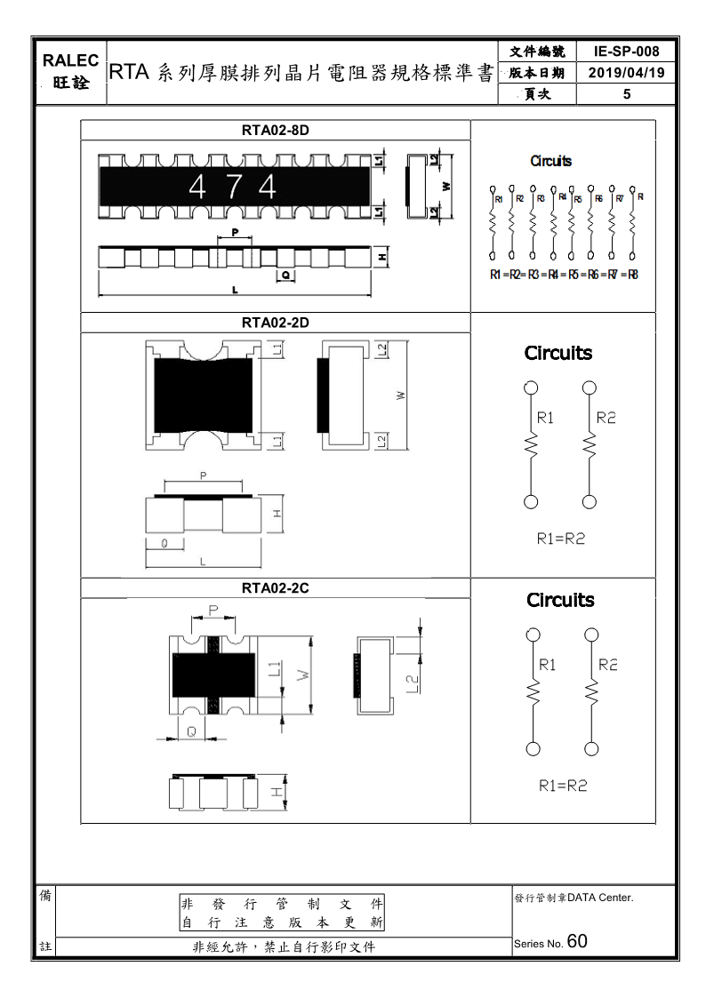 旺诠 贴片电阻厚膜芯片排阻凸电极RTA-D