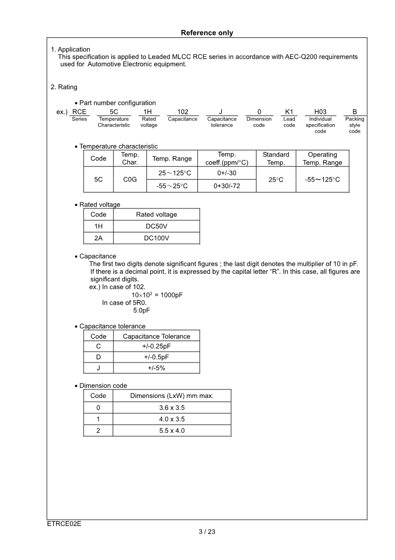 应用领域:本规范适用于引线MLCC RCE系列,符合AEC-Q 200对汽车电子设备的要求。
