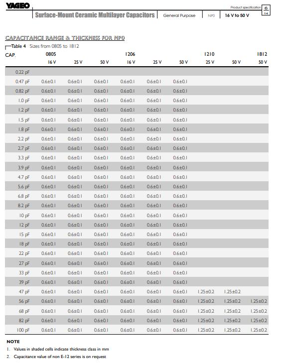 国巨YAGEO陶瓷电容CC NPO系列 CC 1210