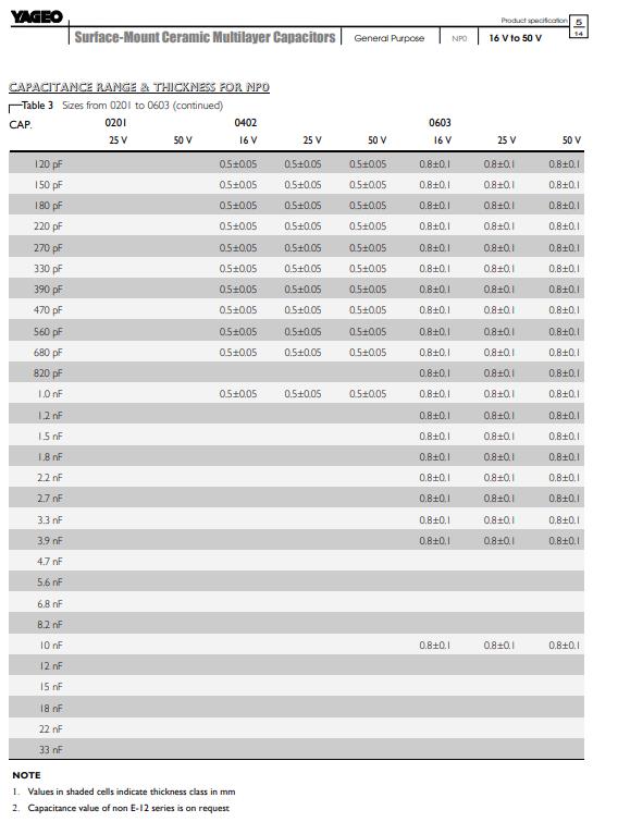 国巨YAGEO陶瓷电容CC NPO系列 CC 1206