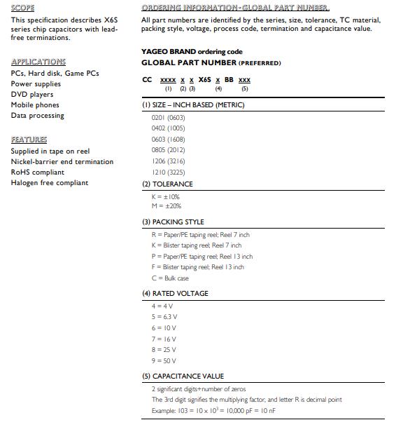 国巨YAGEO陶瓷电容CC X6S系列CC 0805