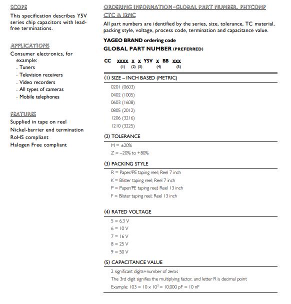 国巨YAGEO陶瓷电容CC Y5V系列CC 1206