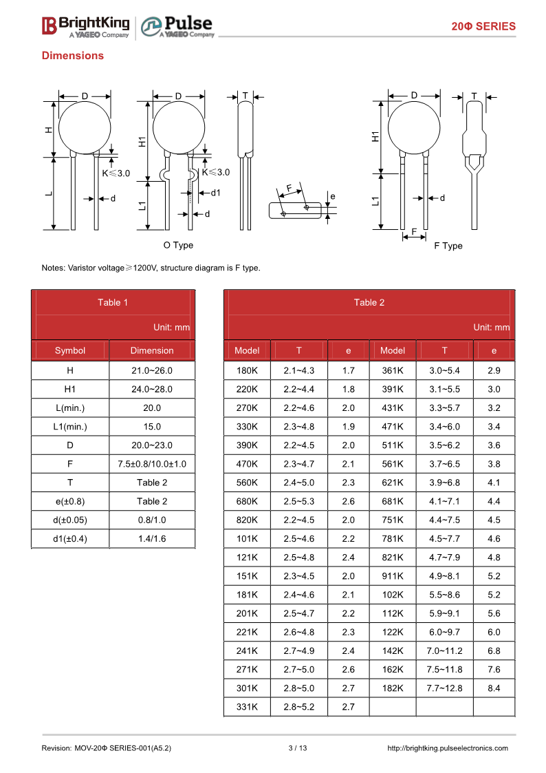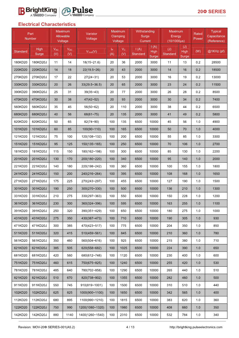 压敏电阻君耀BrightKing压敏电阻插件压敏电阻20D 系列121KD20 121KD20J